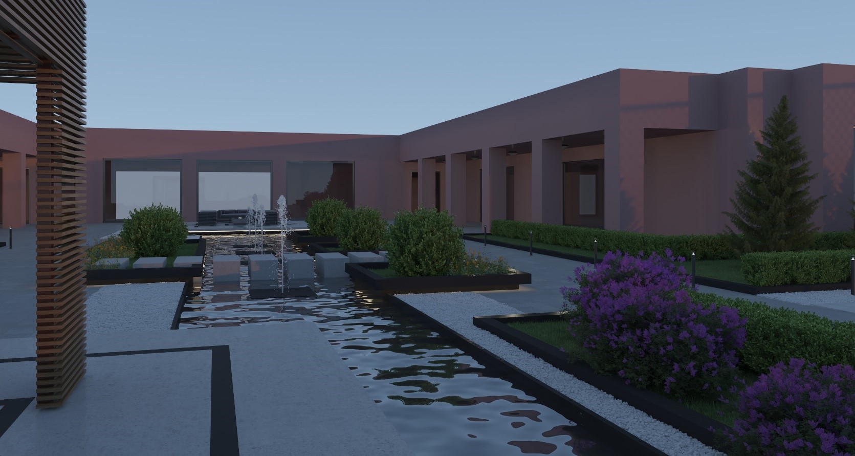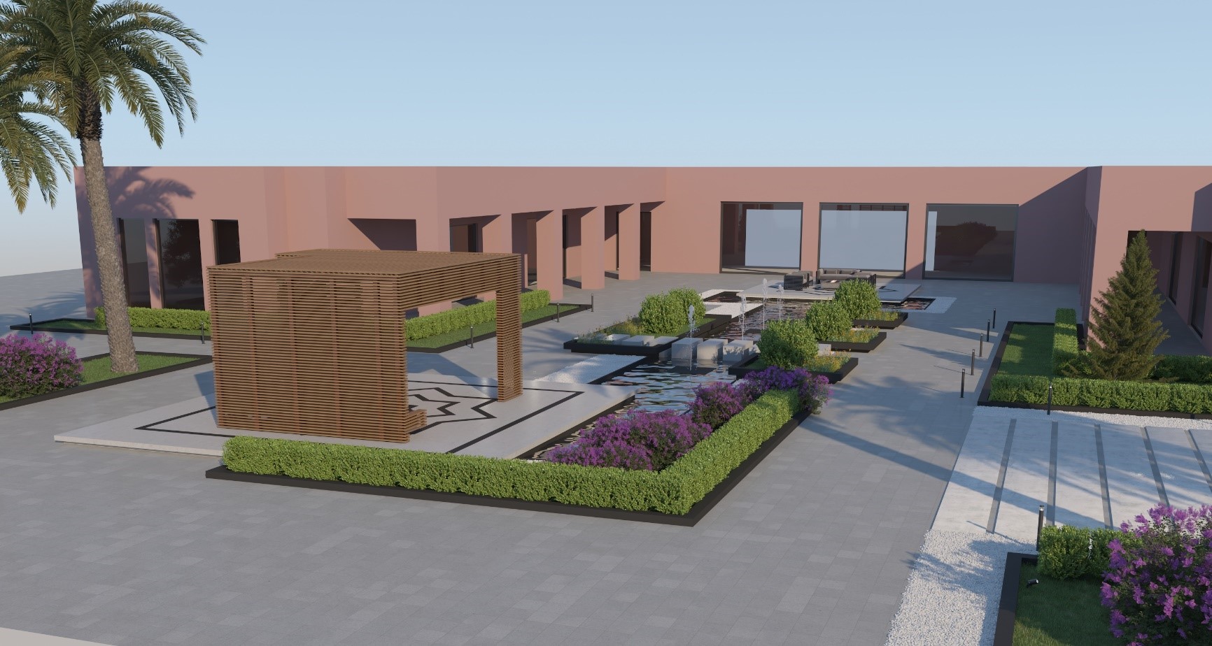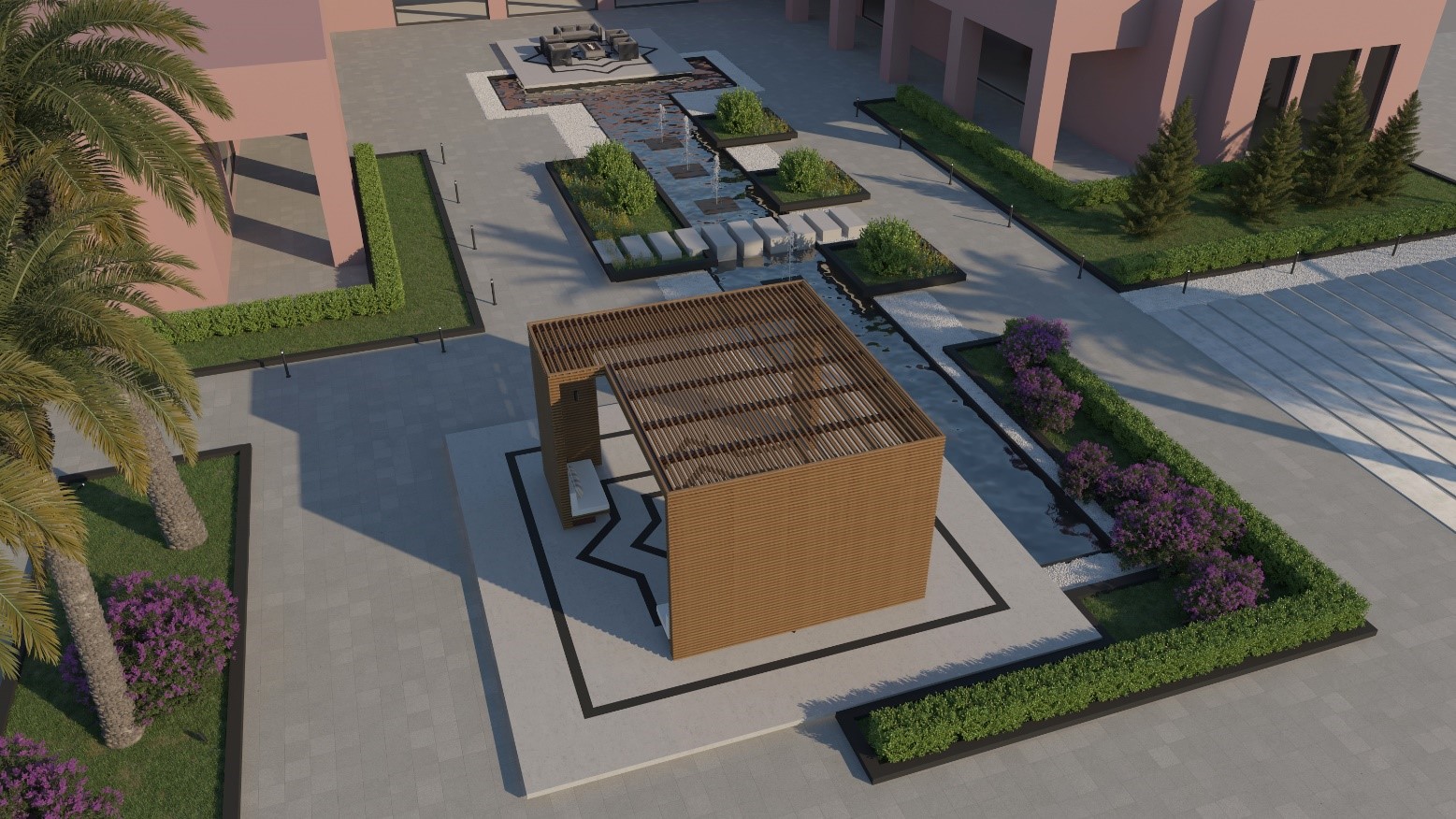 إضافة عناصر مائية و جلسات مكشوفة و مظللة.