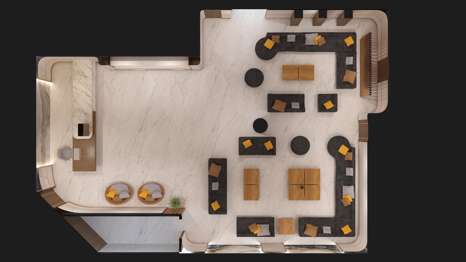 اعتماداً على التقسيم الداخلي للفراغ حسب حاجة العميل تم البدء بتصميم كل فراغ على حداً.