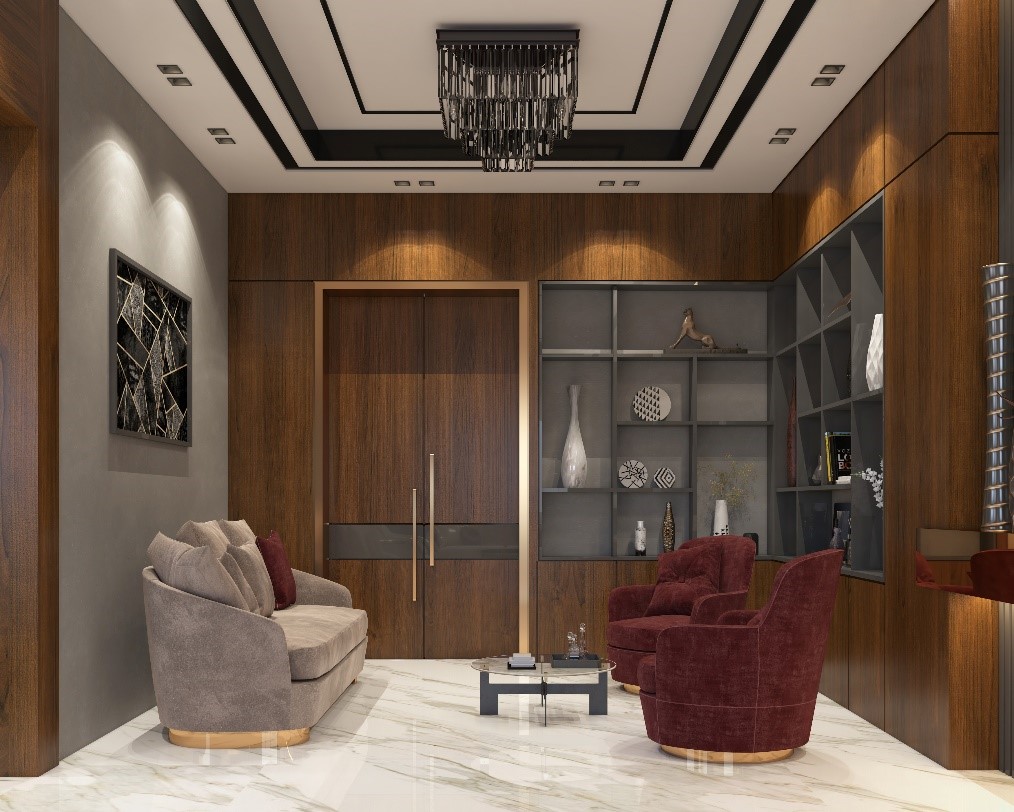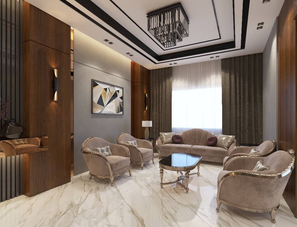 - إضافة لمسة luxury على التصميم حسب الطلب لخصوصية استخدام الفراغ لاستقبال الضيوف.