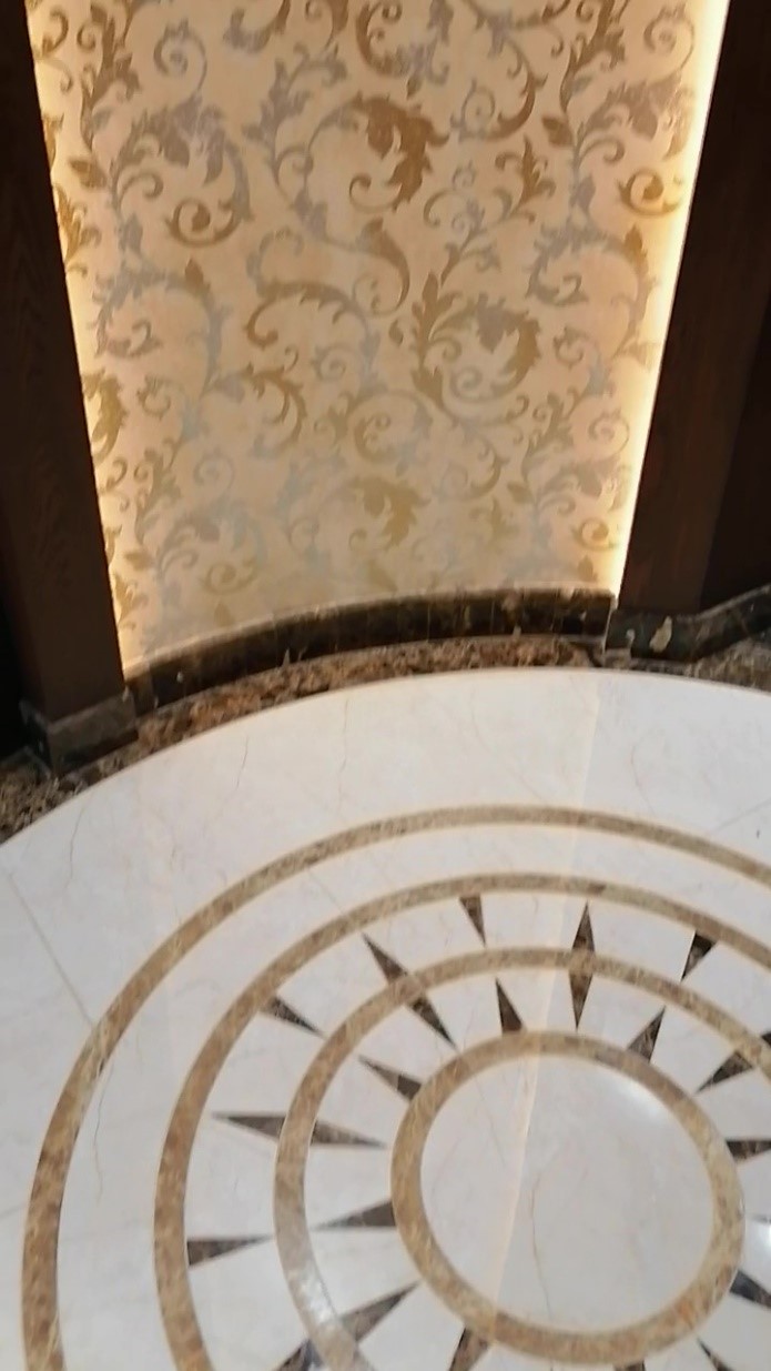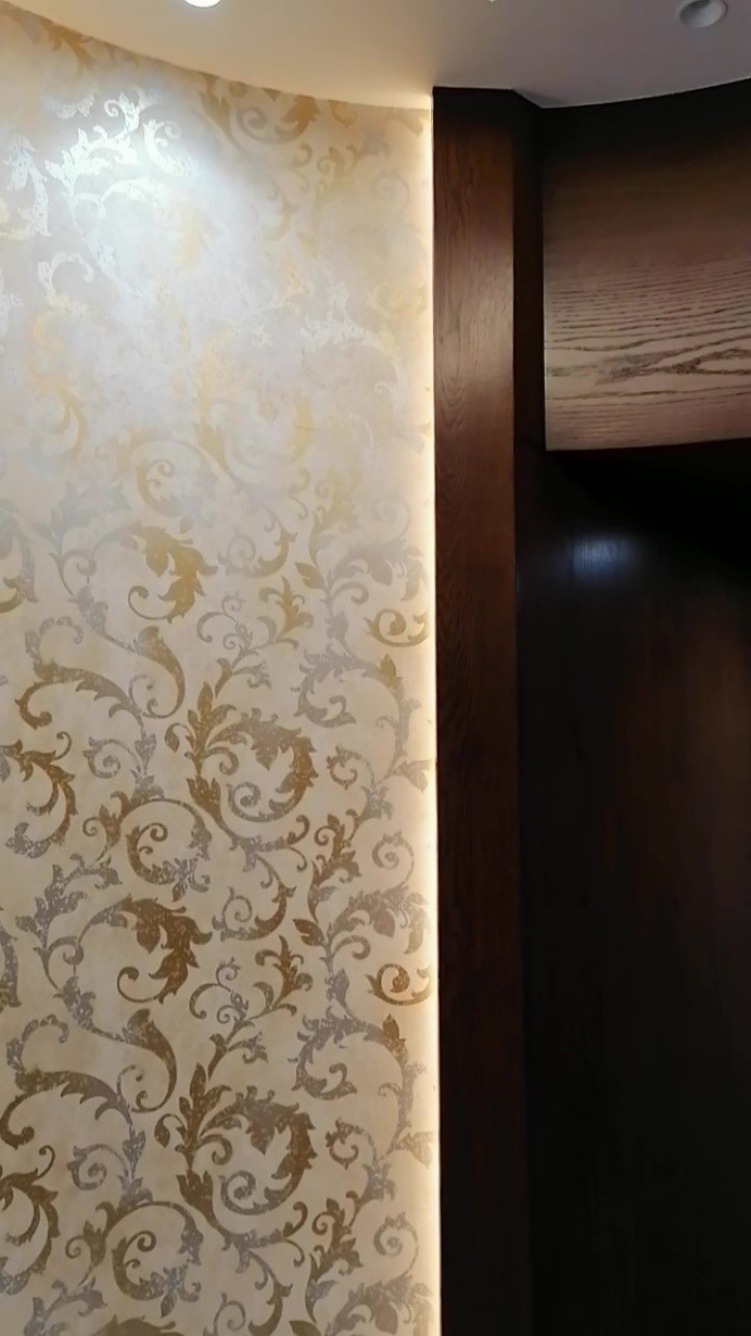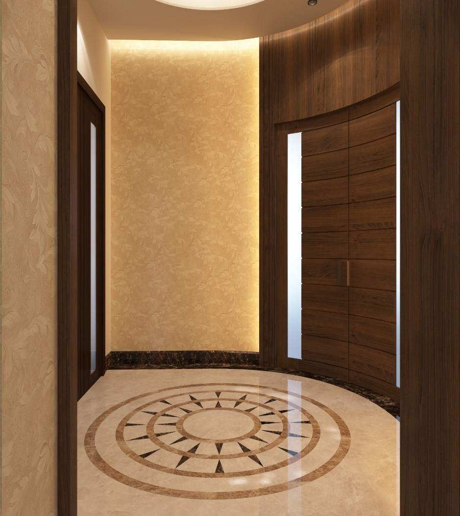 تم اعتماد الشكل المنحني (نصف دائرة) في التصميم لتأمين إمكانية الدخول إلى المنطقة المطلوبة في الصالون.